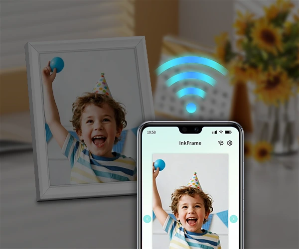 通过Wi-Fi和移动应用远程同步照片或笔记。配备一键式按钮、状态指示灯和自动幻灯片播放功能,操作轻松便捷,适合全家使用。