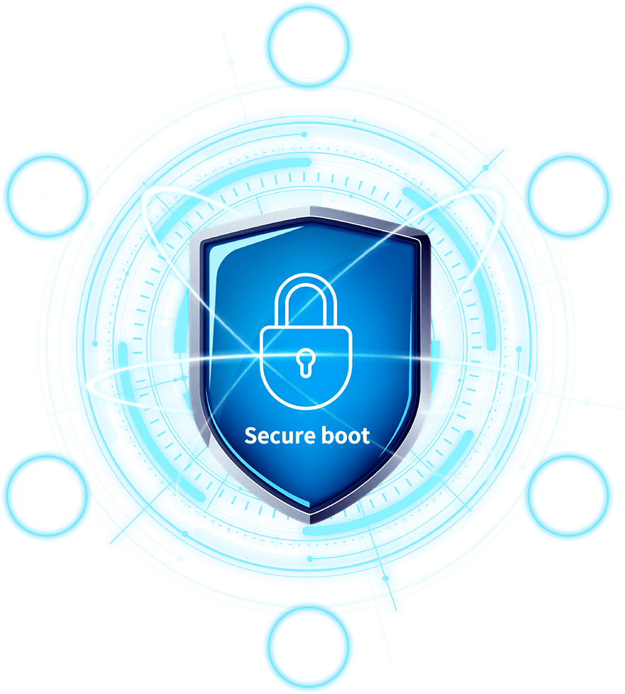 Security engine Secure boot, supports AES/DES/3DES/RSA/SHA-I/SHA-256, secure boot support.
