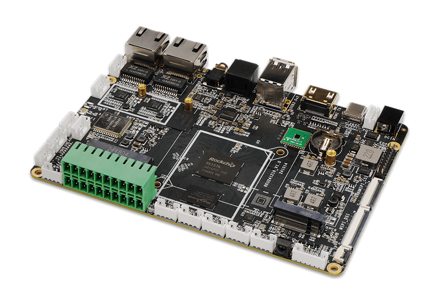 Geniatech DB3576 is a compact 3.5″ IoT single-board computer powered by Rockchip RK3576, featuring an octa-core CPU (4× Cortex-A72 + 4× Cortex-A53), an ARM Mali-G52 GPU, and a 6 TOPS NPU. It supports Android and Linux Debian, with flexible LPDDR4 memory, eMMC storage options, robust connectivity, and multiple display and industrial interfaces—ideal for AIoT and edge computing.