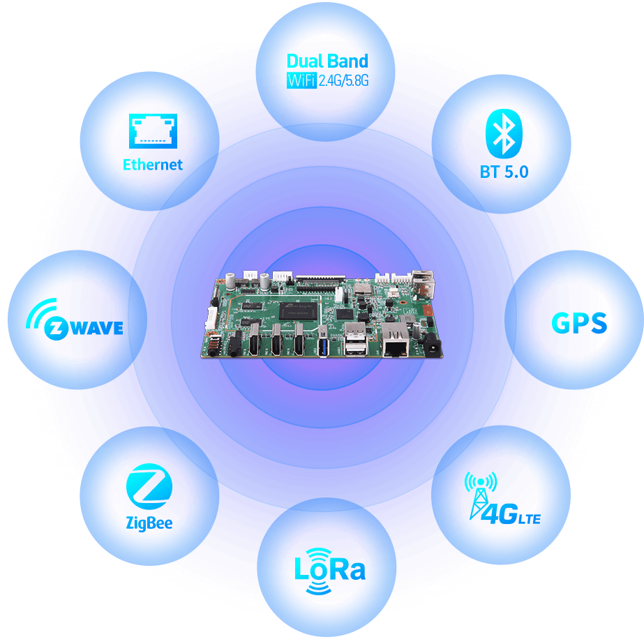 10/100/1000M adaptive Ethernet port, WiFi 2.4G&5.8G dual-band dual-antenna design, Bluetooth 5.0, support Z-WAVE, ZIGBEE, LoRaTE, GPS and other wireless transmission protocols on demand, to meet customer demand for GTIoT IoT interface.