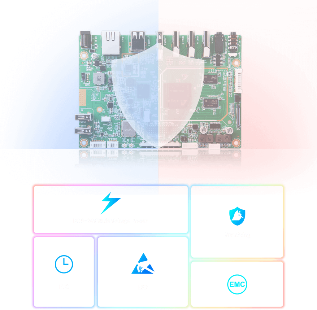 DC 9~24V wide voltage power supply design, to meet the customer’s wider range of voltage power supply options, security is more secure; independent hardware watchdog + RTC;