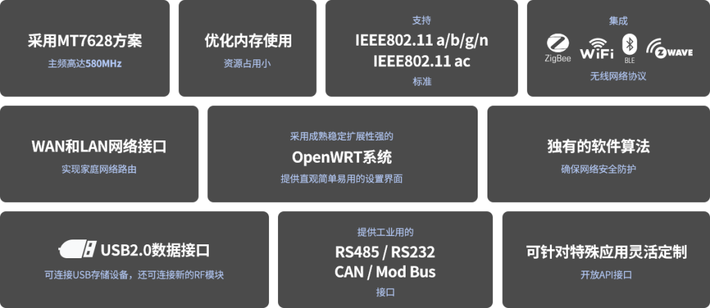 支持外部射频模块(ZigBe,Z-Wave,BLE,4G)