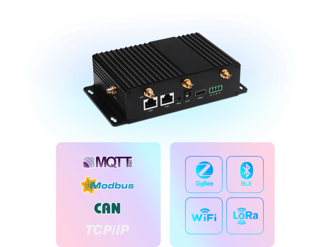 Compatible with MQTT, HTTPS, CAN, ModBus and other mainstream industrial protocols, support ZigBee, BLE, WiFi, LoRa and other common iot connection modes, combined with wireless communication encryption technology, to ensure network security and stability, easy to achieve AD hoc network.