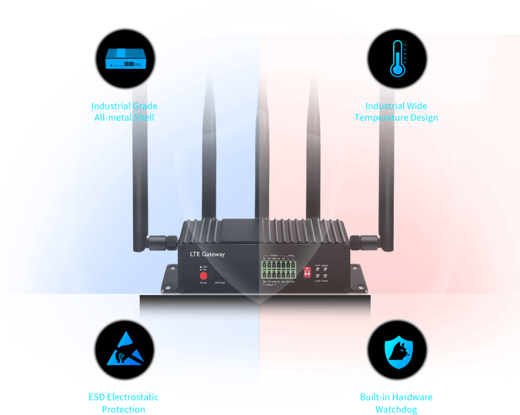 Industrial grade all-metal shell, industrial wide temperature design, built-in hardware watchdog, ESD electrostatic protection, EFT pulse interference, surge anti-interference, pulse group multiple protection, to ensure the safe and reliable operation of the equipment in the harsh environment.