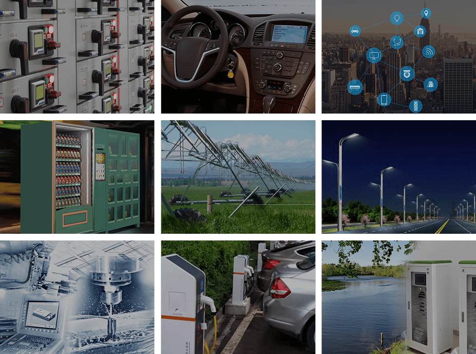 Traditional instrument wireless meter reading, intelligent vehicle, Internet of things, intelligent agriculture (intelligent irrigation, meteorological monitoring), wisdom city (traffic management, intelligent lighting), intelligent manufacturing (automated production line, numerical control system), energy monitoring (solar energy monitoring, electric car charging pile), environmental monitoring (water quality monitoring, sewage treatment), etc.