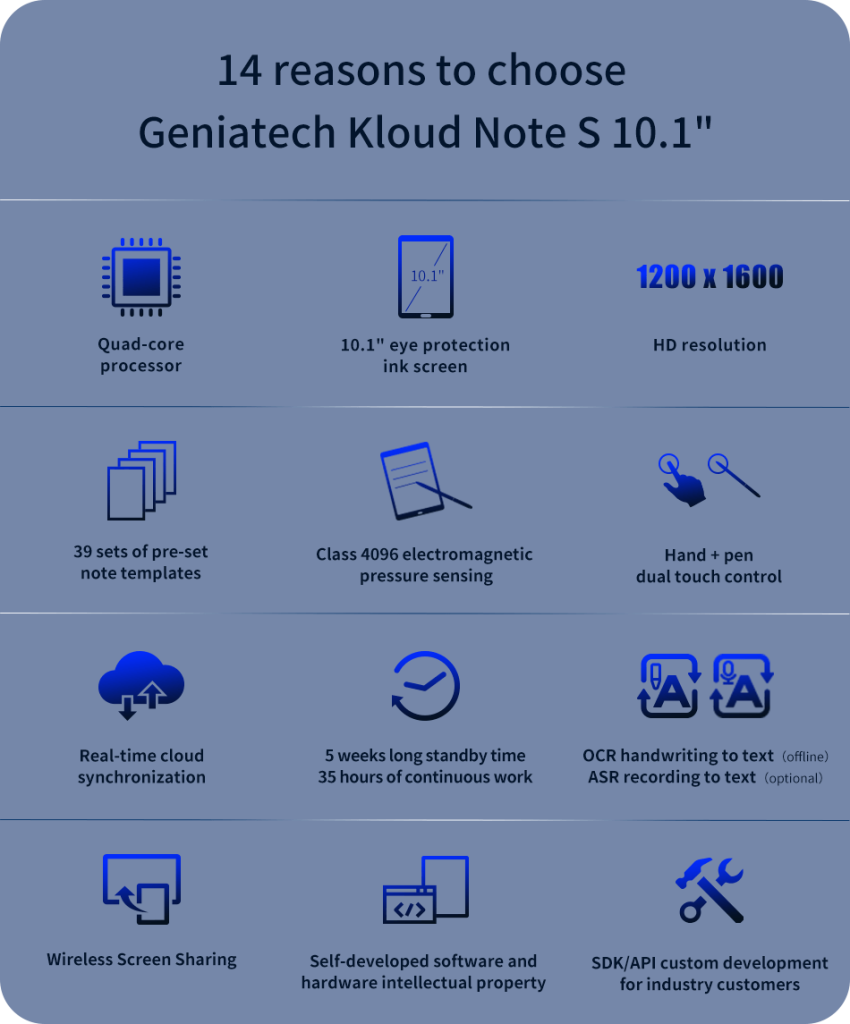 Powered by a Quad-Core Cortex-A35 processor and 2GB memory, our e paper tablet ensures smooth page turning and effortless notes.