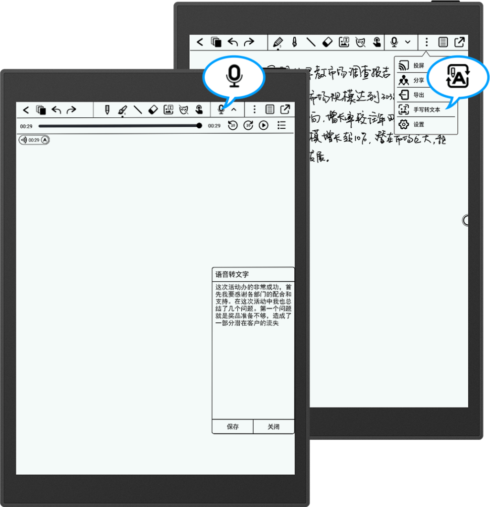 Unlock creativity with features for synchronous recording while taking notes, transcribing recordings and written text to text, real-time cloud synchronization, and one-click export or sharing.