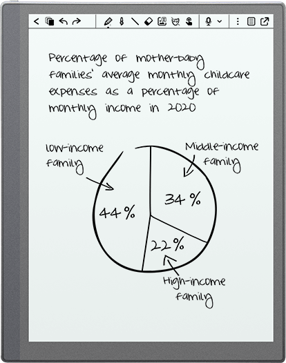 Hold the future in your hands with our Digital Notepad. At 5.3mm thin and weighing just 390g, it’s as effortless as holding a thin paper book with one hand.