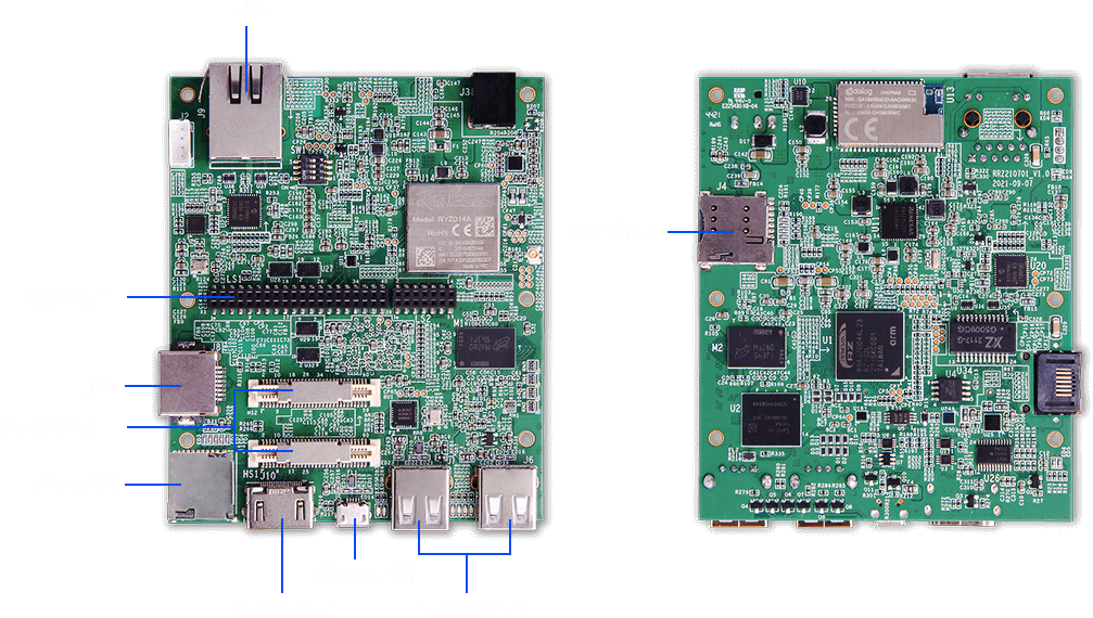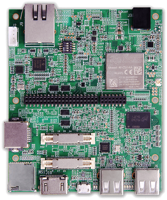 Geniatech AHAURA RS-G2L100 / AKITIO RS-V2L100 开发板基于瑞萨电子低功耗、高效率、高性能的 RZ/G2L / RZ/V2L SoC。该开发板搭载高性能64位双核(Cortex A55)处理器,支持HDMI®输出显示(分辨率最高达1080P)、硬件视频解码(最高1080P)、最高4GB内存、双频2.4/5.0 GHz无线局域网、 蓝牙(符合BT 5.1标准的BLE)、两个千兆以太网端口、两个USB 2.0接口及LTE Cat-M1通信功能,同时支持多种高速接口(如MIPI-DSI/MIPI-CSI/USB2.0)及低速96Boards夹层连接器。
