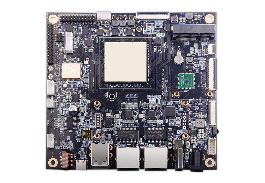 Industrial carrier board designed for NXP i.MX93 SOM, offering comprehensive I/O interfaces for rapid prototyping and edge system integration. Built to OSM-S standard with compact 120×125mm design for industrial applications.