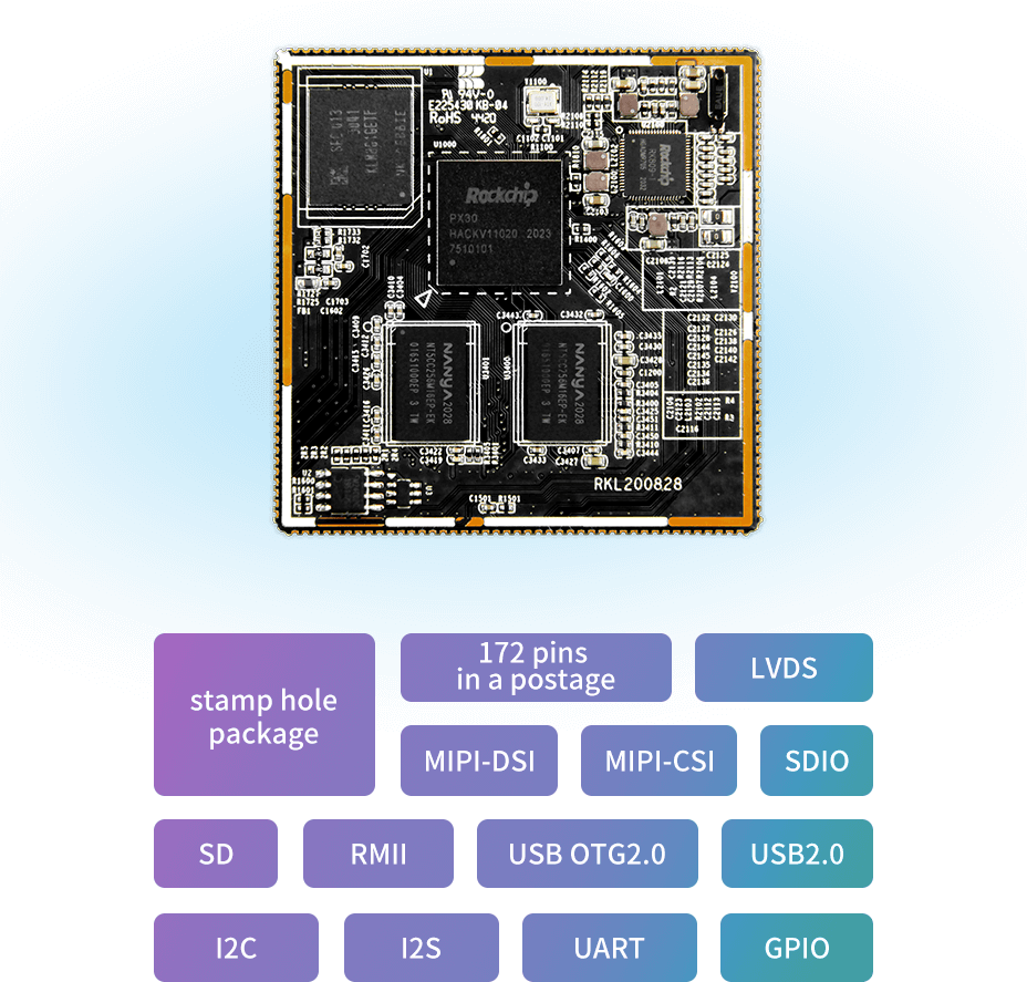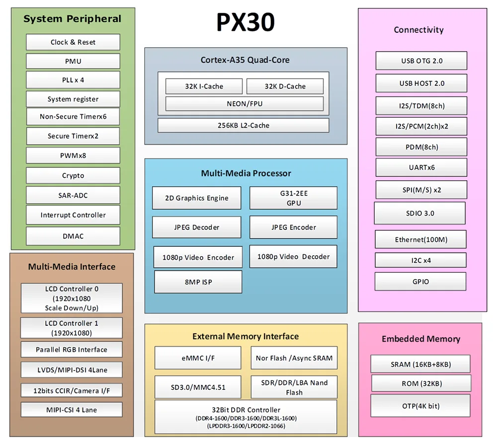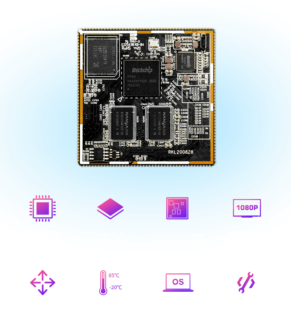This 140x113mm carrier board delivers essential connectivity for PX30 system-on-modules, providing a complete interface solution for IoT devices, vehicle infotainment, and commercial displays with optimized cost structure.