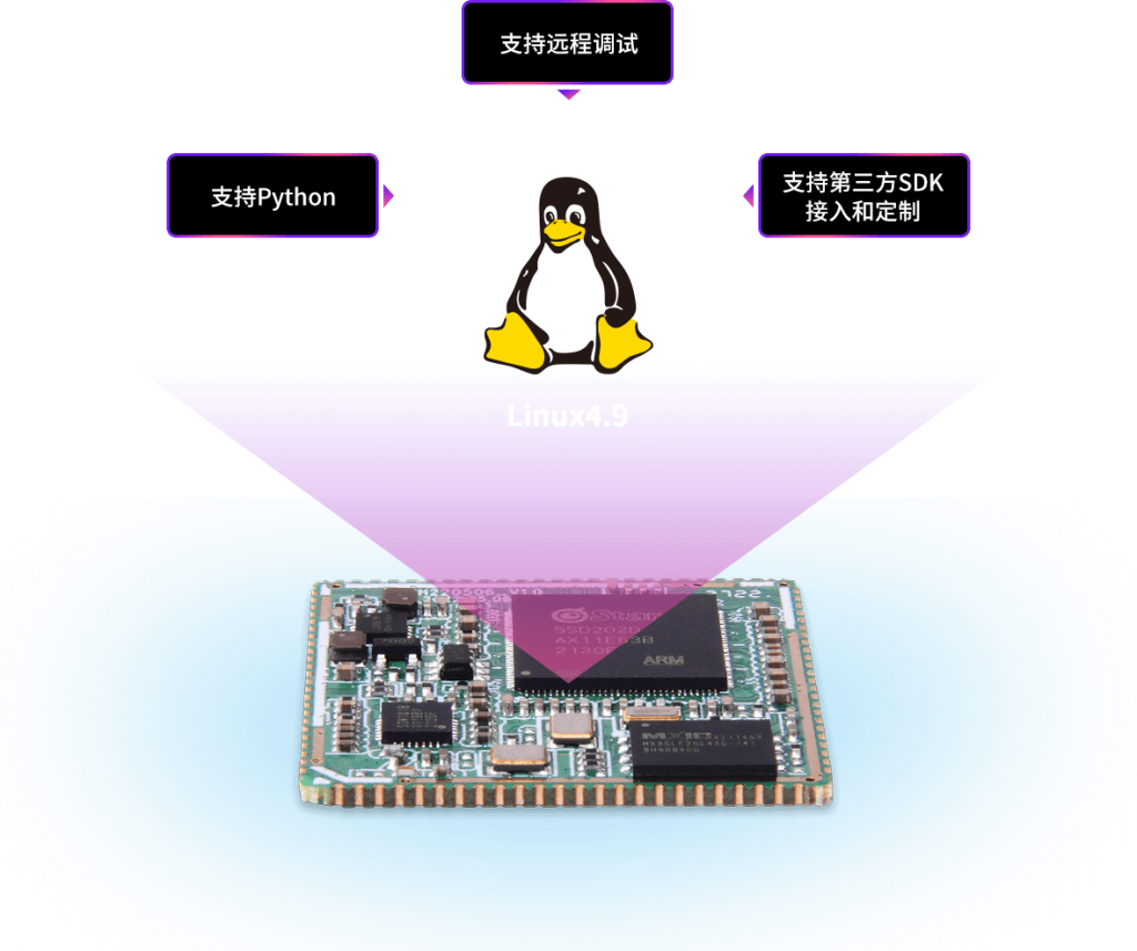定制的嵌入式linux4.9操作系统,开机速度非常快,支持Python、远程调试,支持第三方SDK接入和定制,可提供包含系统内核修改、驱动程序移植、应用程序开发和UI界面定制等一整套完整的软件系统定制服务,为产品研产提供安全稳定的系统环境。