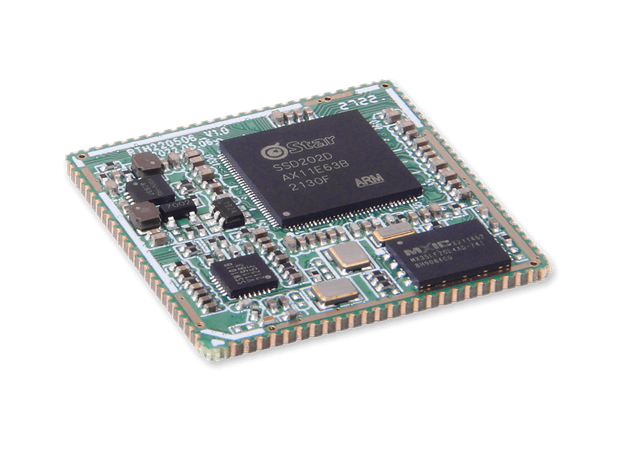 ARM Cortex-A7 dual-core processor, 1.2GHz main frequency, built-in 64MB/128MB DDR RAM, built-in 2D graphics engine, integrated H.264/H.265 video decoder, support MIPI-DSI/RGB and other display interfaces. 1920 x1080@ 60fps maximum resolution.