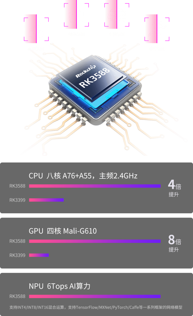 - 摄像头输入:双MIPI-CSI接口、HDMI 2.0输入