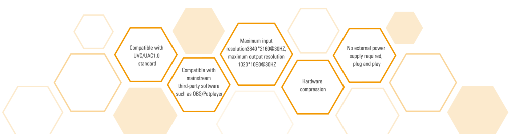 | Max output Resolution | compressed 1080P30, UVC video stream with UAC audio |