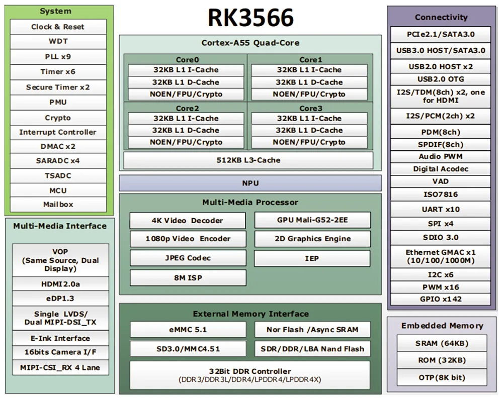 | CPU | Quad-core ARM Cortex-A55 CPU up to 1.8GHz |